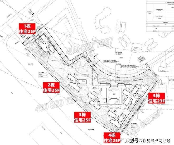 『中海·云颂玖章花园』整个小区内部由5座23-25层的住宅楼组成,有2梯4户、2梯5户两种梯户配置,每层楼标准层高都是3米。
