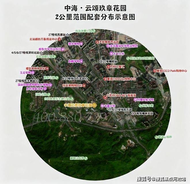 『中海·云颂玖章花园』位于龙华民治街道梅林关板块,金龙路与新区大道交汇处东侧,紧邻万科金域华府、书房门第、白石龙音乐公园,距离4号线白石龙站&民乐站步行约700米左右,距离6号线梅林关站步行约1300米。