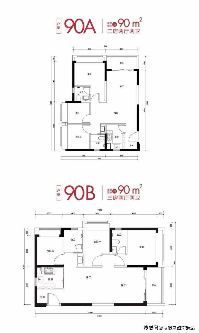 【户型鉴赏·90㎡三房两卫】