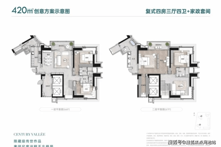深业世纪山谷前两次加推开盘的都是公寓,现在住宅首发!还是定位相当高端的纯大平层而且还是无敌景观视野,8梯3户,233㎡/280㎡配备两个独立电梯,386㎡双梯设计,实在任性!
