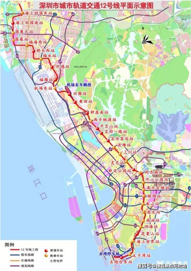 地铁12号线由南向北依次串联蛇口自贸区、南山中心区、前海自贸区、宝安中心区、机场和会展片区,是支撑深圳西部发展轴的轨道交通骨干线。