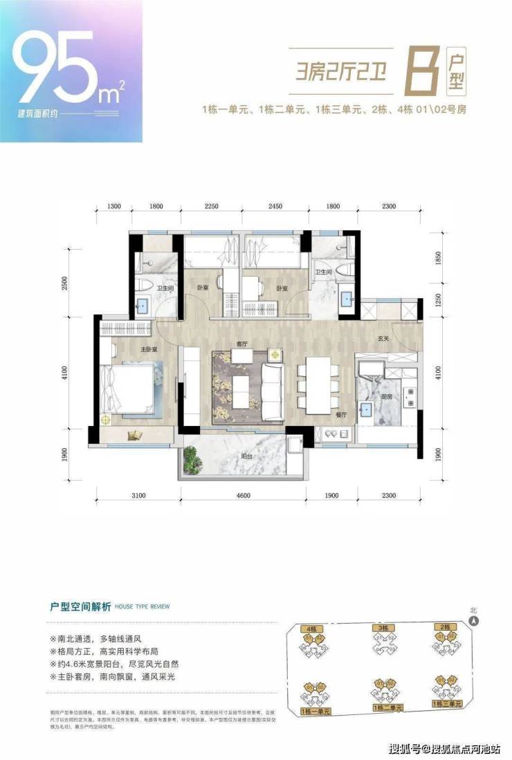 B户型:3房2厅2卫(95㎡)