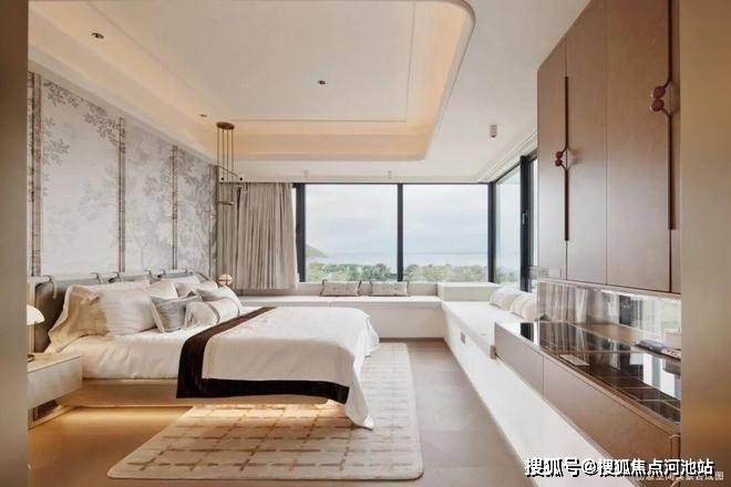 约6.3-6.8米阔景阳台,打造空中观景平台,晨起沐光舒展,午后品茶观海(部分),夜幕揽星入梦;打造星级主卧套房,坐拥270°南向环幕海景(部分),将一湾蔚蓝私藏窗前,把度假般的松弛感融入日常。