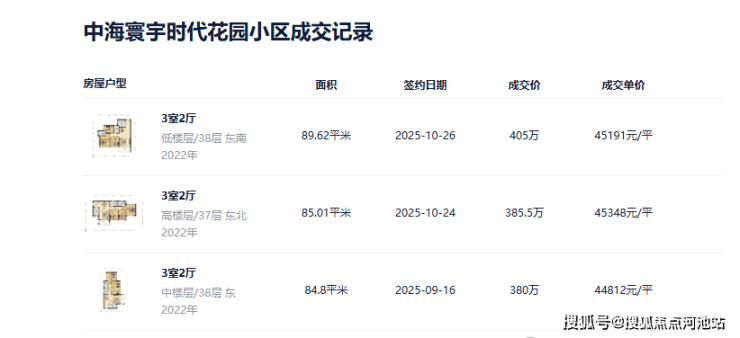 比如,建面约89㎡的三房,最近成交价基本在4.5万/㎡左右。