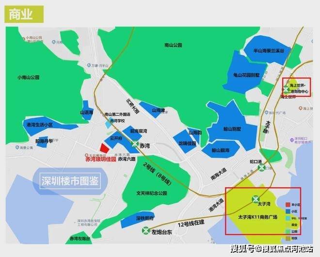 • 商业方面:周边有赤湾汇购物中心(在建中)、太子湾k11购物中心(在建中,即将开业)等大型商业配套,同时项目自带部分底商,旁边还有30万平方米的赤湾地铁综合体,分布着人人乐、华润万家、惠生活等商超,可满足日常购物需求。