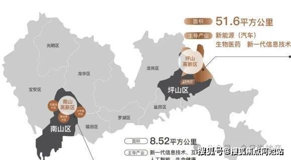 西靠南山,东邻坪山,坪山高新园区规划总面积51.6平方公里,预计吸引近6000亿元投资。园区内聚焦三大千亿级产业,打造四大标志性产业集群,前景广阔,潜力巨大。