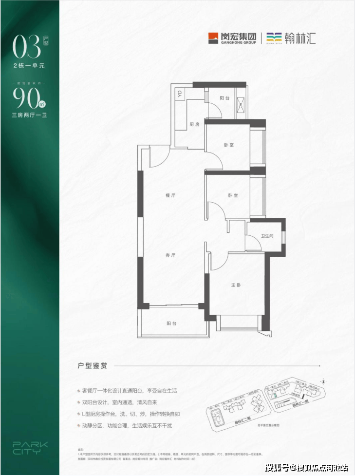 岗宏翰林汇项目总建面约47万㎡,分三期建设,包括住宅、写字楼等产品,并配建有幼儿园、9年制公办学校和约5万㎡商业中心。项目由01和02地块组成,首推02地块一期,由两栋46层高(3梯5户)超高层建筑和两栋32层高高层(2梯5户)建筑组成。建面约74-131㎡两到四房户型产品,主推两至三房为主。整个项目1640套住宅,车位1956个。