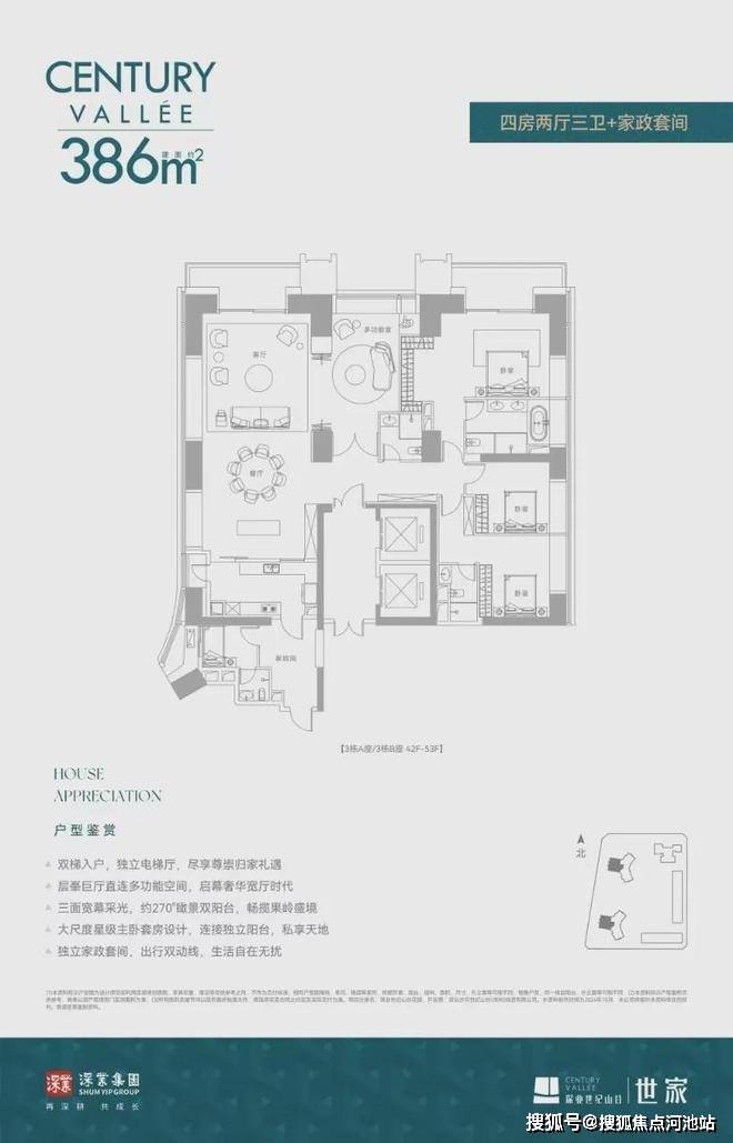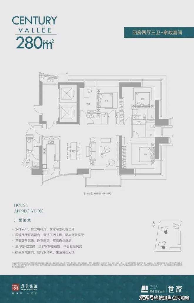 拥有深湾侨城核心景观的深业世纪山谷,推出深圳绝版级别的全新大平层住宅——深业世纪山谷·世家,建面约233-280-386㎡纯大户型,位于项目3栋AB座,近百米的楼间距,8梯3户、拥有头排高尔夫景观,私密性和格调拉满。