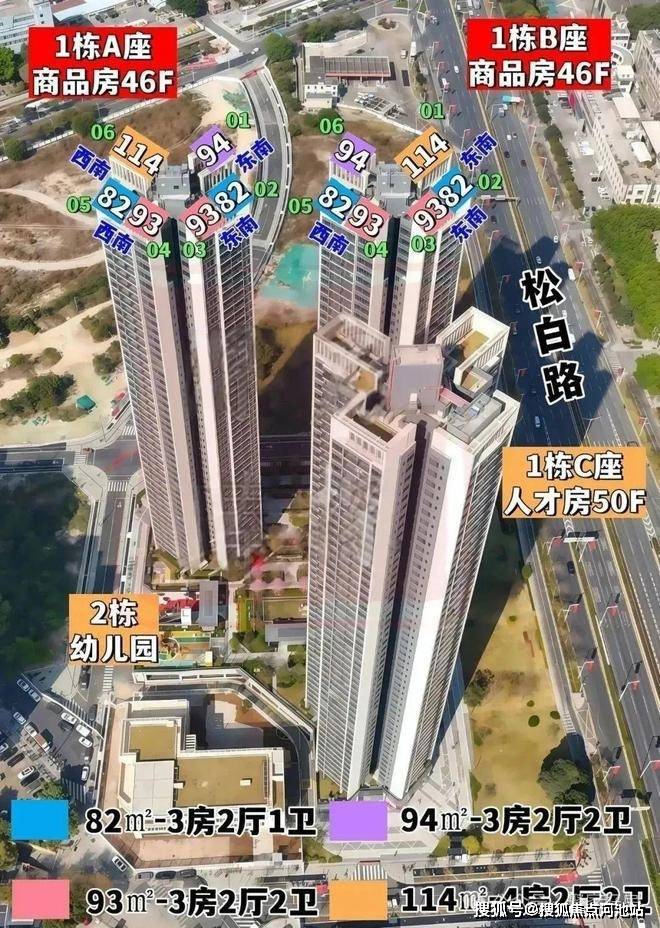 本项目共推出1栋A/B座482套房源,面积有82㎡的3房1卫,93-94㎡的3房2卫,114㎡的4房2卫户型,备案均价4.32/㎡,备案单价3.93-5.19万/㎡,总价334-596万/套,交楼时间是2025年9月30日前带简装修。