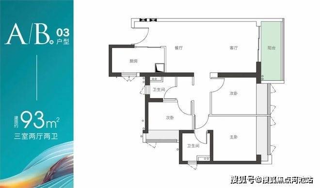 93㎡的3房2厅2卫,折后总价264起,折后单价2.83万/㎡起。
