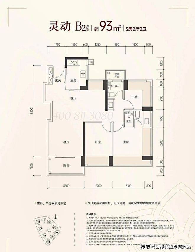 产品方面,大户型产品都用上了南北双阳台设计,主卧沿用新规270°大飘窗,连小户型儿童房也用上双飘窗,通风采光效果绝佳,预计得房率高达100%。其中93㎡可以改3+1房