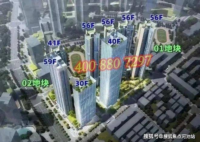 01-02地块,总占地面积约1.23万㎡,总建筑面积约15.08万㎡,计容建筑面积约10.85万㎡,容积率8.31,绿化率40.01%,共由2栋41-59F高的住宅组成,其中3栋住宅41F,4栋公共租赁住房59F,5栋办公楼30F,2栋是1所9班制幼儿园。