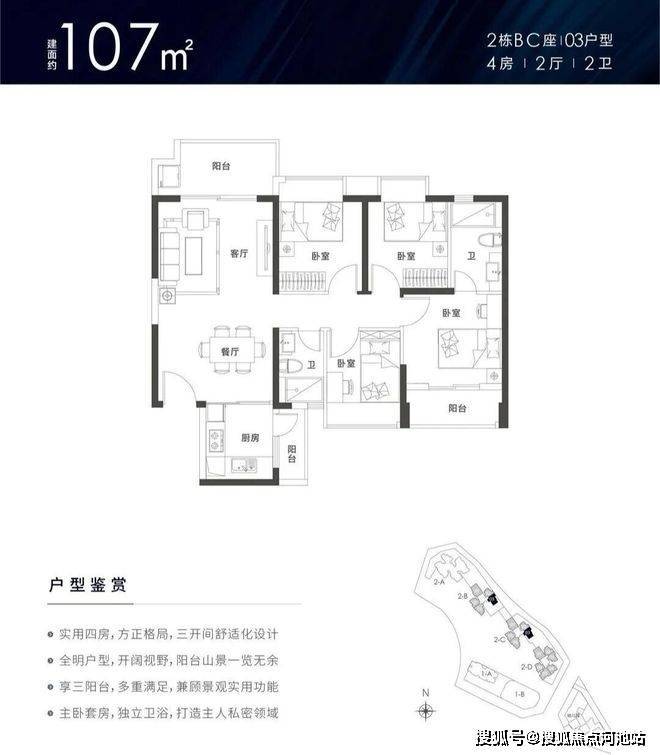 建面约78-129㎡3-4房瞰景阔宅,最高近10m直连观景阳台阔绰竖厅,低层看园林、中高层双面无遮挡瞰山景。