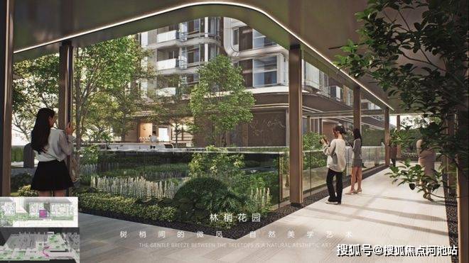 以“空中院馆”为设计理念链接自然,营造酒店式的生活体验。通过风雨连廊联动四季庭院,实现室内外功能整合。园区结构由极核中庭、生活美学庭院、礼序花园玄关和景观泳池组成,核心元素包括林下客厅、秘密花园及浅丘秘境,并利用空中花园打造观景廊亭,增强城市视野。