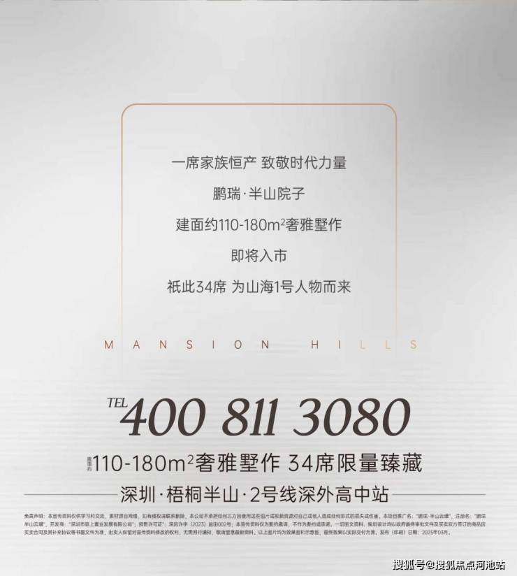 最新消息:深圳盐田区鹏瑞·半山云璟,叠墅产品(半山院子)已全面开启认购,货量34套,毛坯交付,备案单价8-11万,建面约101-179平户型!