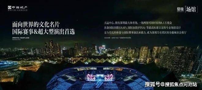 大运中心拥有深圳最大体育场,一场两馆可同时容纳约8.1万观众,具备国际田联(IAAF)、国际泳联(FINA)等最高标准认证的专业场馆设计,是国际赛事与超大型演出的首选。项目头排对望大运中心,,近享家门口的世界盛会。(信息来源:龙岗区文化广电旅游体育局官网)