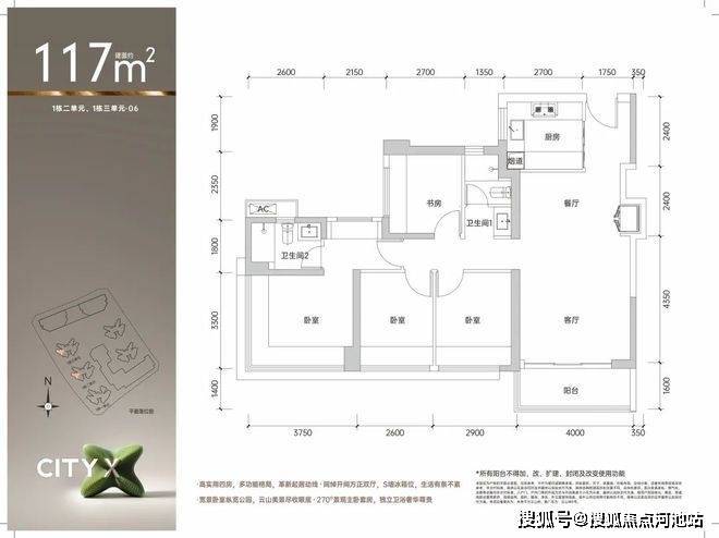 【建筑面积117㎡4房2卫】