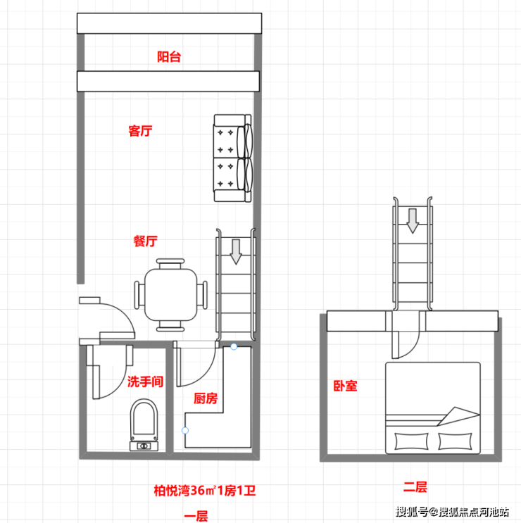 恒裕柏悦湾公寓36㎡1房2庁1卫一层4户