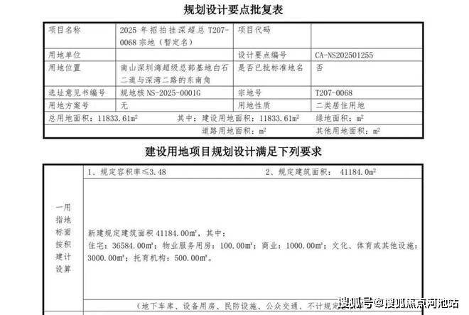 T207-0068宗地位于南山深圳湾超级总部基地白石二道与深湾二路的东南侧,土地面积11833.61㎡,建筑面积41184㎡,规定容积率3.48,其中住宅容积率3.1,起始价223600万元。