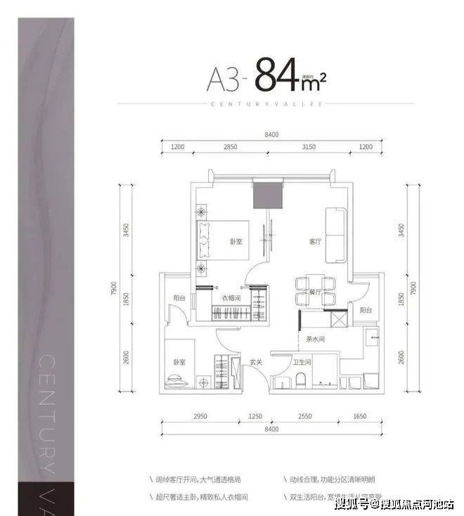 A3户型——建面约84㎡2房