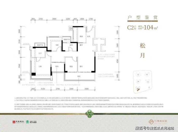 【建筑面积104㎡4房2卫】