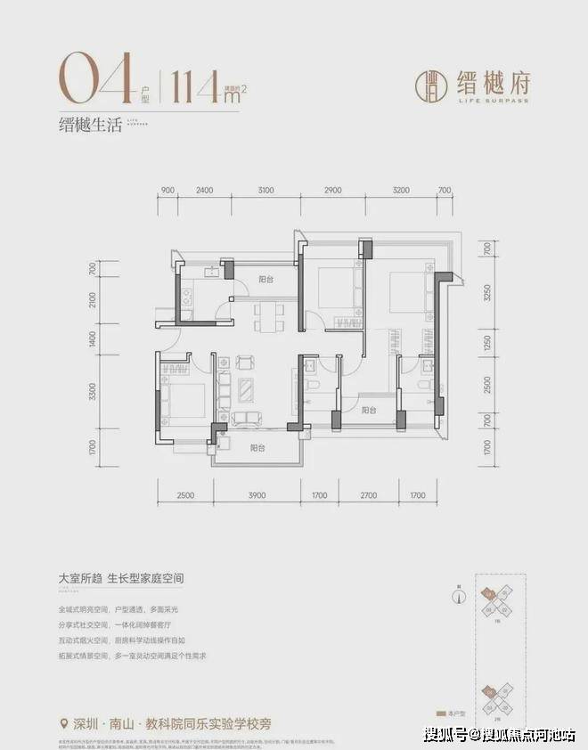 南山南头的桑泰缙樾府项目预计2026年6月30日前带精装交付。户型包括114-118㎡的4房2厅2卫和133㎡的5房2厅2卫,开盘推出9.31折优惠,折后均价降至6.79万/㎡,总价区间737-943万/套。户户南北通透,低容积率,豪宅配置,桑泰缙樾府成为市场焦点。