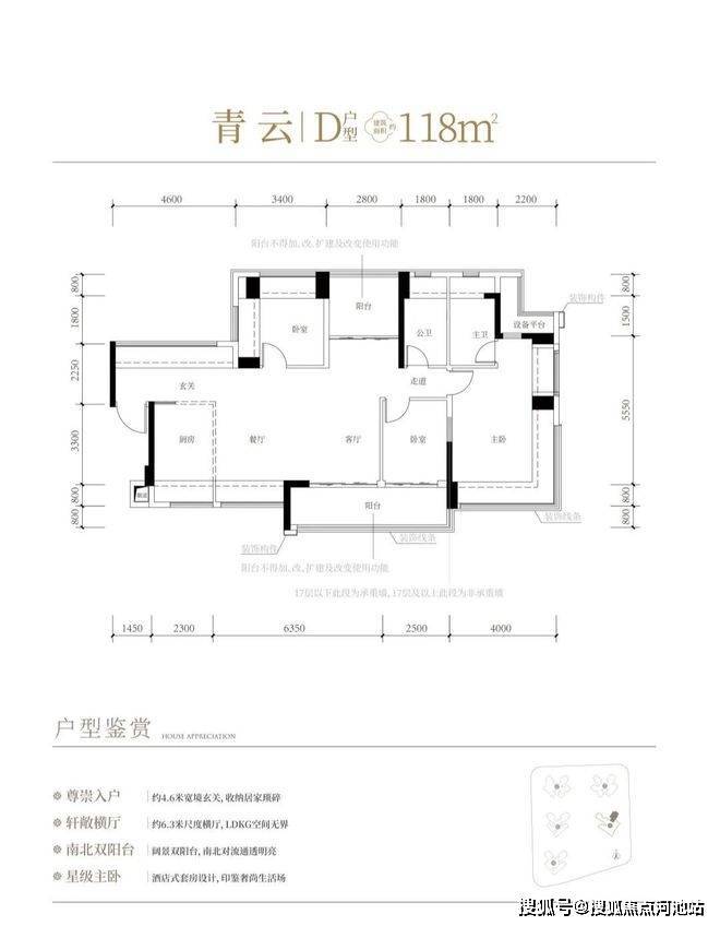 创新型成长户型,适应家庭不同阶段的需求变化,拔墙设柱设计、分户S墙、创新LDKC内外亲子双区等。
