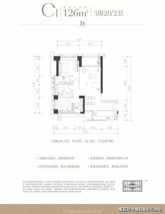 前海桂湾「前海时代三期·尊府」加推5-1地块的住宅「前海之门」,已开样板房,预计3月20日取证,月底开盘。楼栋号为61栋,标准层4梯8户,户型包括: