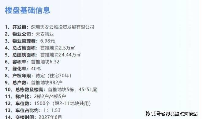 龙岗坂田住宅新楼盘——天安云谷3期(备案名:云谷里花园),项目推广名:天安1号在2025年12月11日已取证入市,首推1栋1单元和1栋2单元,建面约118㎡的3房2卫,140㎡的4房2卫,166㎡的4房2厅3卫,255㎡的4房2厅4卫户型,共301套房源,备案均价7.75万/㎡,备案单价6.42-9.22万/㎡,总价756-2357万/套,另外有一套542㎡的顶豪大面积,备案总价7530万,单价13.88万/㎡,关于交楼时间合同约定在2027年6月份带高品质精装交房。