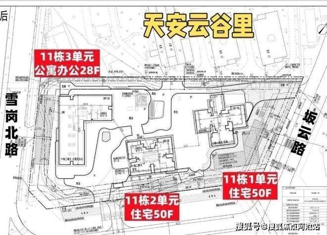 天安云谷里01-03地块,总占地面积约3.45万㎡,总建筑面积约34.5万㎡,计容建筑面积约24.5万㎡,容积率7.11,绿化率40%,共由5栋总高45-54层住宅组成,另外配建2栋总高16-27层酒店,其中9栋1单元保障房45F,9栋2/3单元住宅54F,9栋4/5单元住宅53F,10栋是1所18班幼儿园,配建约1.8万㎡商业。