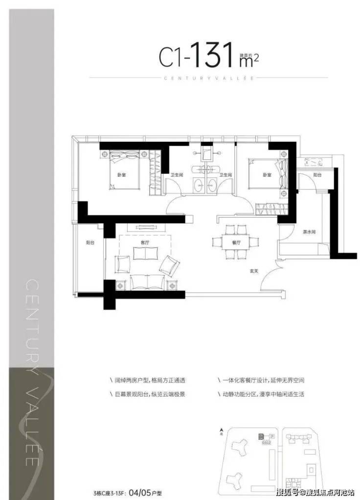 约131-262㎡2-5房,天幕公馆,70年产权,户户带阳台。由“全球百大设计巨头”矩阵纵横设计,约3.3m奢阔层高,环幕景观阳台。