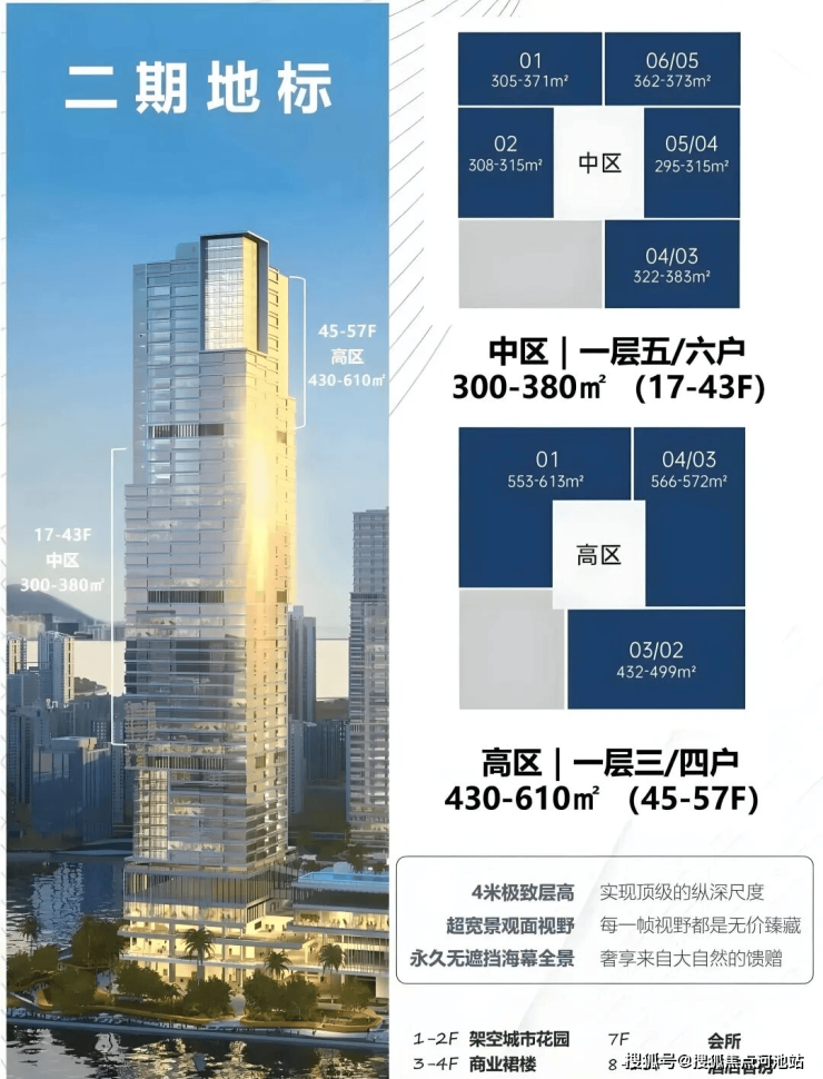 商办产品面积从298到614平米不等,分为中区和高区: