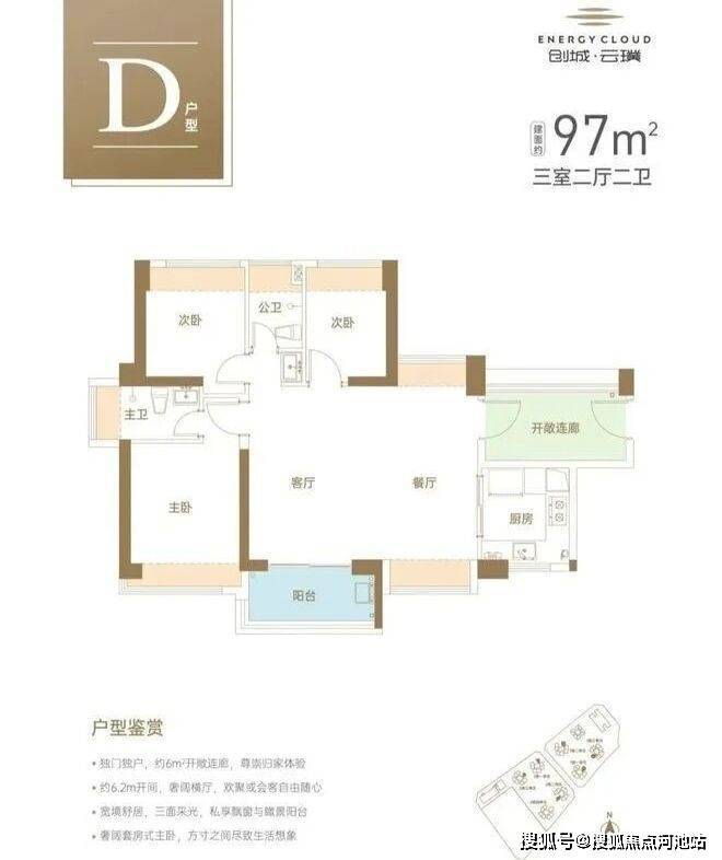 建面约97㎡独门独户3房2厅2卫,三面采光设计,室内阳光超长待机,约6.2m大开间横厅,出入步履无拘。