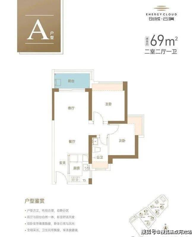 建面约69㎡舒适2房2厅1卫,全明采光,双卧室带瞰景飘窗,多维收纳空间,让收纳无忧。