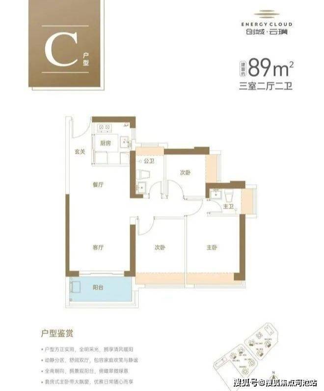 建面约89㎡阳光3房2厅2卫,全明户型设计,户户均朝阳采光,卧室带飘窗,生活多出N种精彩