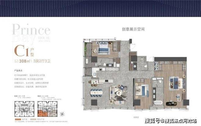 大平面大尺度定位,层高约3.6米,横厅设计确保最大化观景面,全户型纵享环幕视野。项目打造主力建面约215-415㎡纯粹品质公寓共191席,顶层为建面约1270㎡公寓产品。