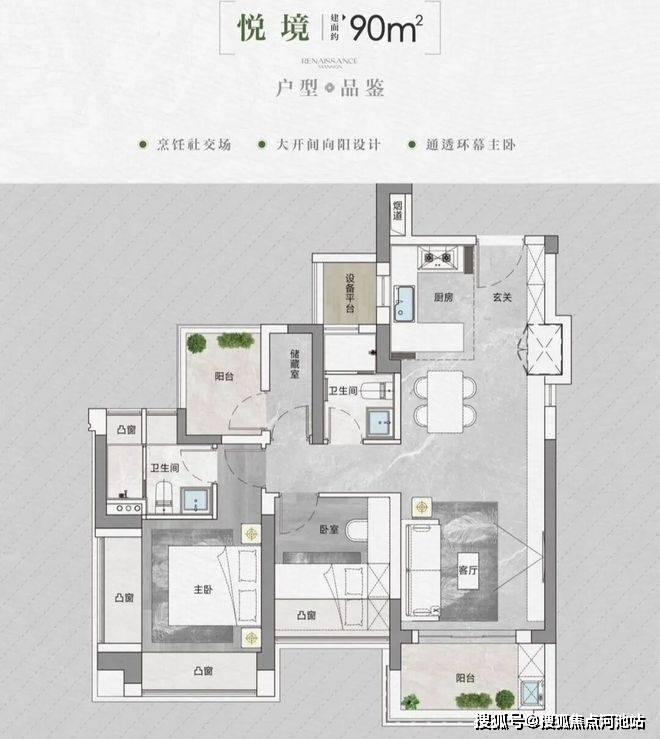 竖厅格局,进门入户玄关,超大宽面客厅5米开间,LDKB一体化,S墙设计预留冰箱卡槽位,三开间朝南,3个卧室分别做到了主卧16.62㎡/次卧11.31㎡/次卧7.28㎡(实测面积),U型厨房,卫生间干湿分离,还带2个设备平台,得房率约96.1-96.69%(包含赠送),东南或东北朝向。