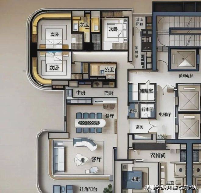 5梯2户:近乎私梯的配置(平均2.5梯服务1户),出行便捷无忧。适合追求极致空间体验与顶级服务的家族或精英领袖。