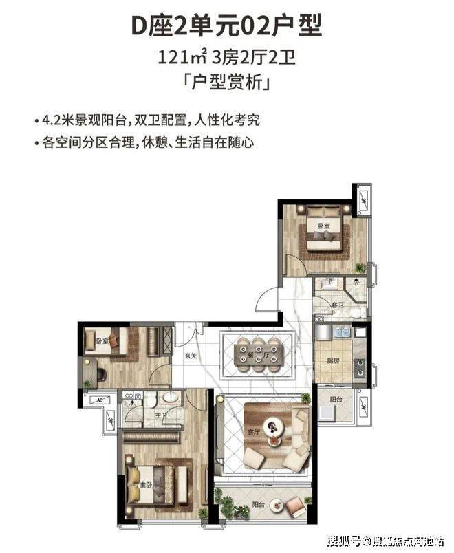 121㎡ 3房户型:单价:5.3万起、总价550万起