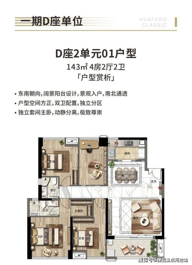 143㎡ 4房户型:单价:5.3万起、总价770万起