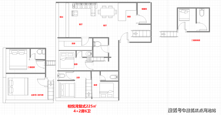 225-252㎡4+2房6卫,东北深圳湾+城景,西北前海湾+城景,东南深圳湾+大小南山,西南前海湾+大小南山