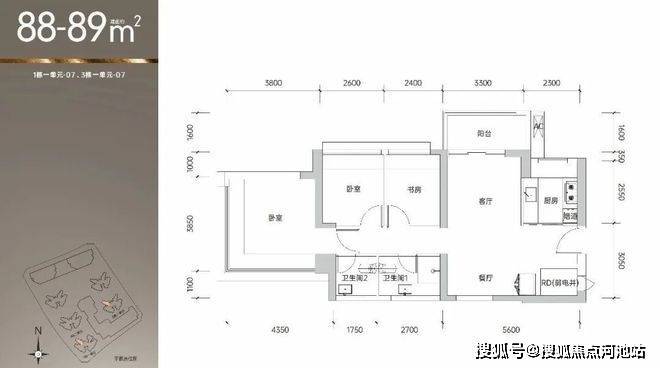 88㎡的3房2卫,折后总价313-323万/套,折后单价3.56-3.66万/㎡。