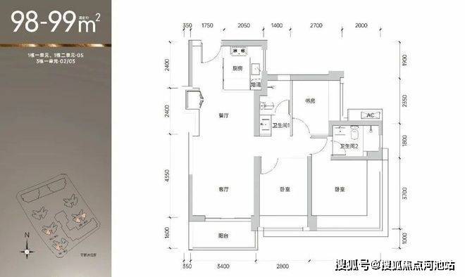 98㎡的3房2卫,折后总价346-390万/套,折后单价3.48-3.97万/㎡。