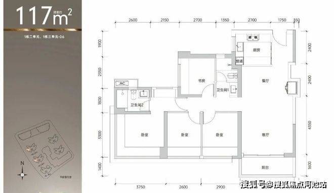 另外1栋2单元还有117㎡的4房2卫,折后总价509-520万/套,折后单价4.34-4.44万/㎡。