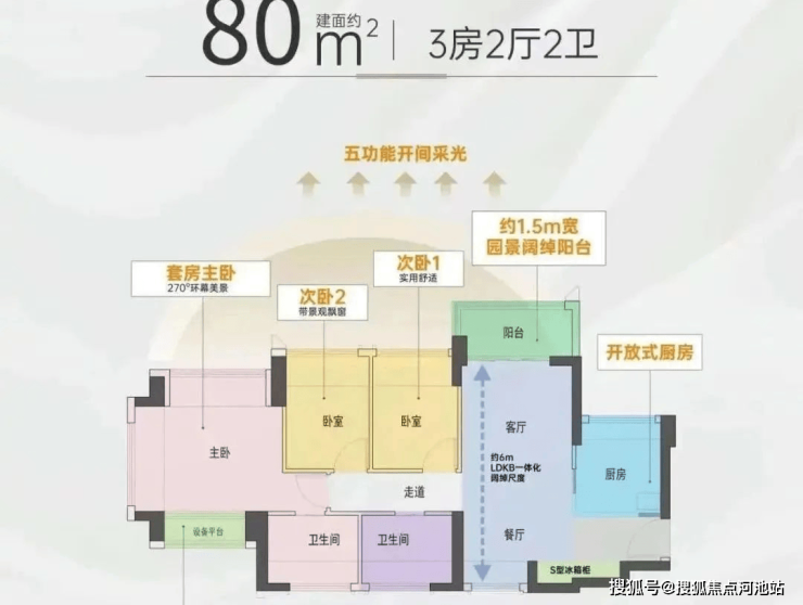 溪山禾玺御府的面积段比较丰富,包括约75-80-83-85㎡3房、94-105㎡4房,每个户型都设计有大飘窗+大阳台+设备平台。对于新规户型而言,这些空间越大说明户型赠送的越多。(飘窗、设备平台是不计入面积属于全赠送,阳台则计一半、赠送一半面积)