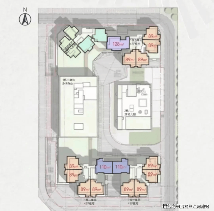 - 住宅部分:1栋1/2单元为47层商品房,1栋5单元为41层人才房,另有回迁房规划;