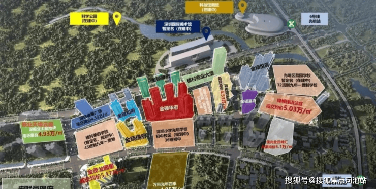 此外,科学公园周边还涵盖“一馆三中心”文体配套,除已建成的光明区图书馆、文化艺术中心、光明区群众体育中心,科学城体育中心已于23年6月底正式开工。