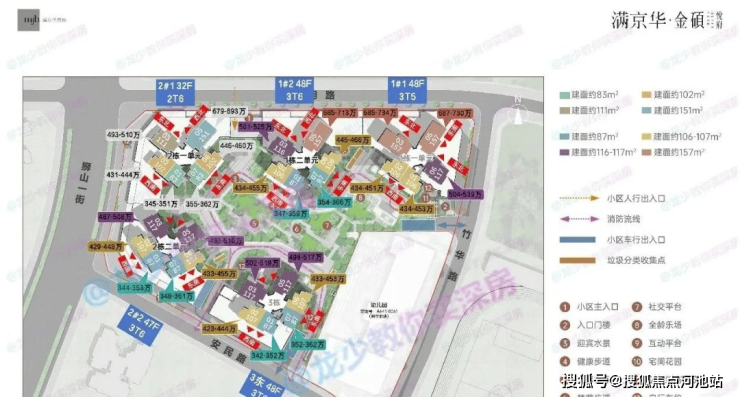 产品:包含83-157㎡ 3-5房建筑新规产品,共4个户型,包含83-87㎡3房2卫,102-107㎡4房2卫,111-118㎡4房2卫,151-157㎡5房2卫,主打刚需和改善。