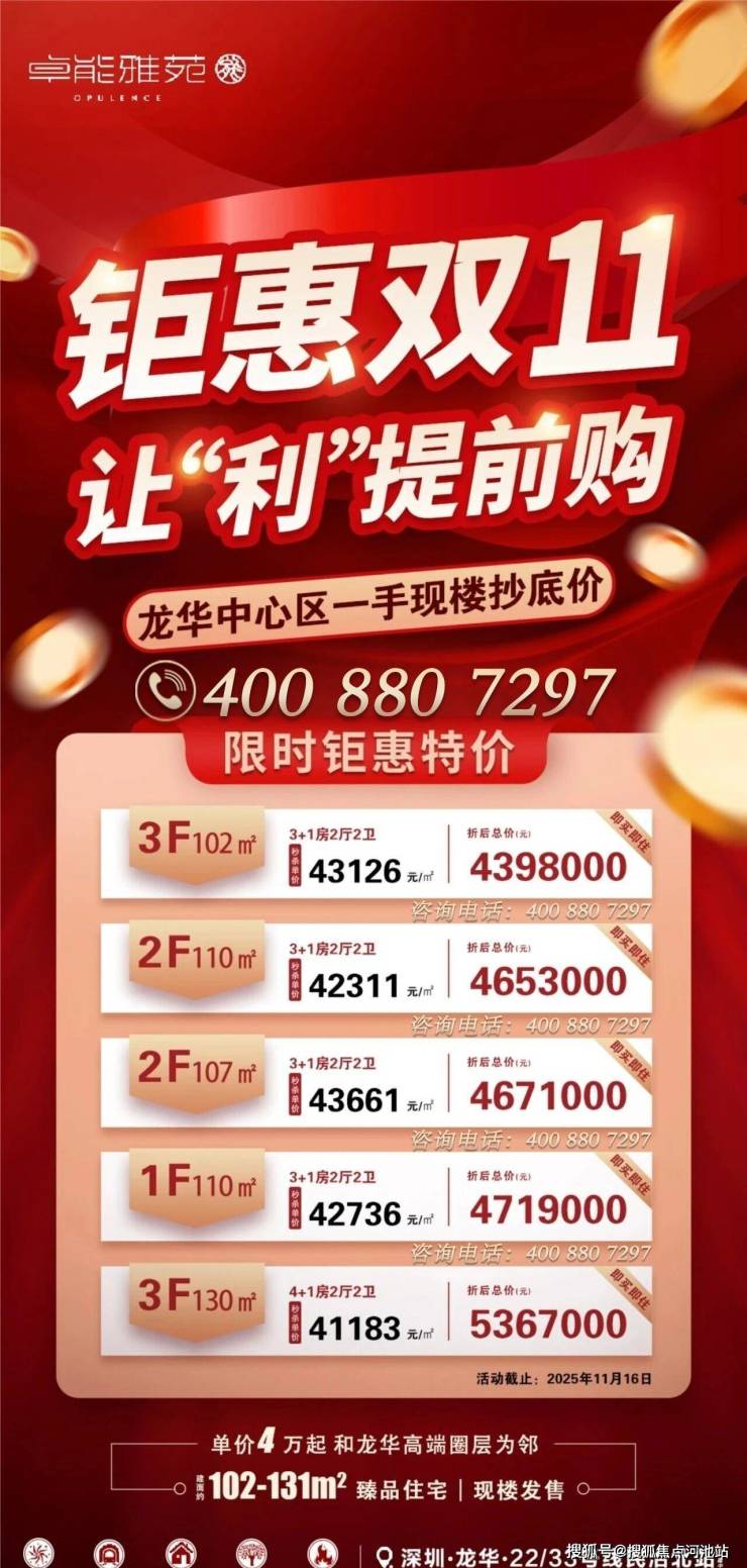 看完以上介绍,如需了解更多关于我们深圳龙华民治卓能雅苑楼盘最新消息、剩余房源以及楼层、这几天房价优惠活动、在卖的户型、限购政策、房贷相关问题等情况,欢迎来电咨询卓能雅苑楼盘开发商售楼处全国免费400咨询/预约电话:400 880 7297(已认证)中介请勿扰。