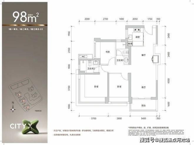 【建筑面积98㎡3房2卫】